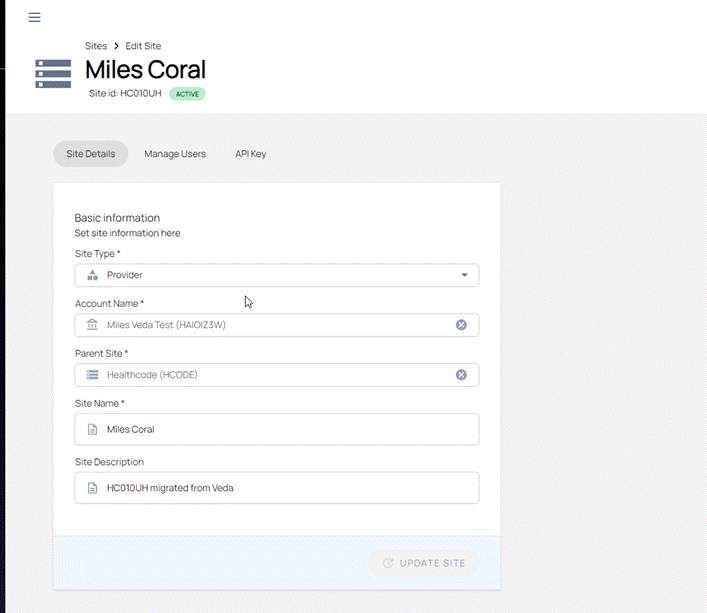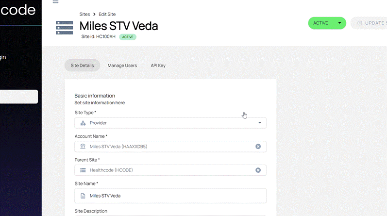 | Customer Ops Feedback – When generating an API key for a site the page would land back on the Site Details tab. Now, the page will remain on the API Key tab. |