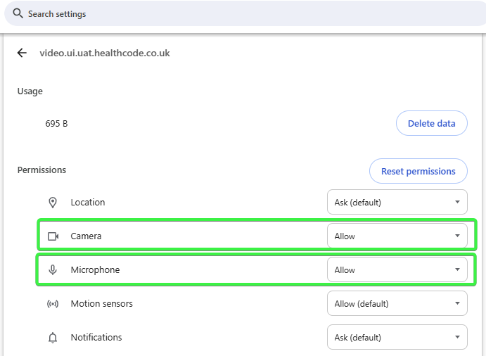 Next, close the settings tab and reload the video consultation page.